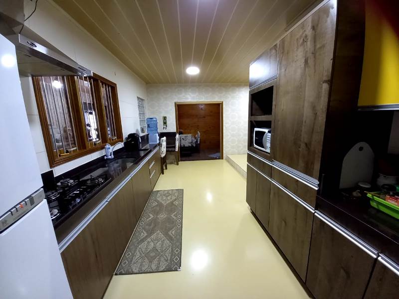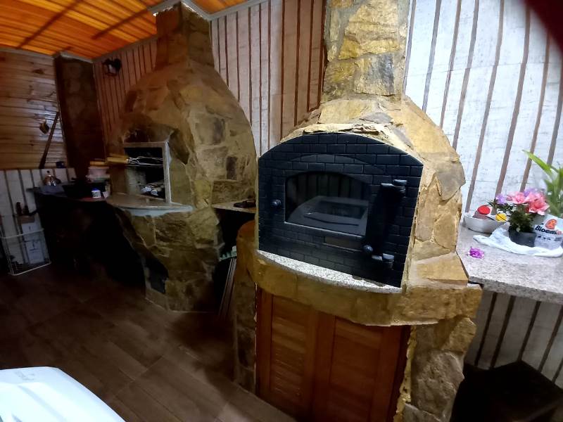 🛠️ Piso superior em madeira, cozinha integrada à sala de jantar, churrasqueira e forno de alvenaria.